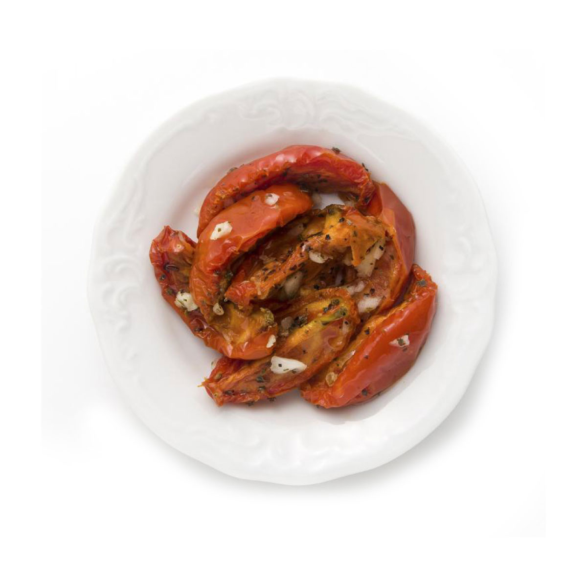 - Sweet Semi-Dried Italian Tomatoes in Oil — Oregano and garlic marinated for more subtle applications